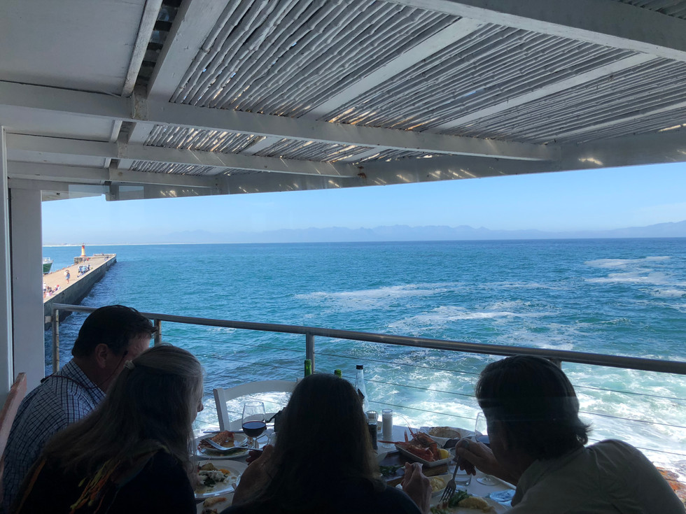 Gegen 14:30 hatten wir einen Tisch im Harbour House Restaurant in Kalk Beach reserviert, waren also etwas in Eile (weil wir uns bei den Pinguinen etwas verlaufen hatten – einmal falsch abgebogen und wir waren am Badestrand, was uns erst auffiel, als wir bemerkten, dass alle Badeklamotten anhatten, nur wir nicht). Wir haben es dann pünktlich eine halbe Stunde später geschafft und hatten ein wirklich vorzügliches Mahl mit einer einmaligen Aussicht auf die Brandung und den Hafen. Gut, Paul gefiel die Speisekarte nicht und Bati wollte ihre Gnocchi nicht runterwürgen, aber uns gefiel es sehr. Fazit: Mein Swordfish (ich weiß, Julie, das »w« ist stumm, so wie bei Django das »D«) war gelungen, sehr gelungen und Gnocchi bestellt man in Italien oder allenfalls im Il Vagabondo. Hier nicht.
